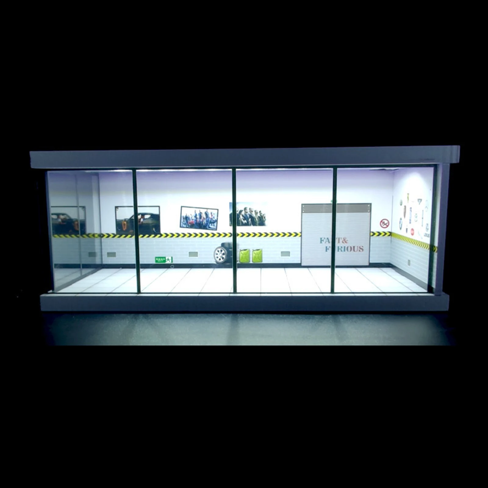 1/64 Diorama Car Garage Model LED Lighting City Car Showroom Scene for Miniatures Vehicles Display Model Assembled Parking Lot