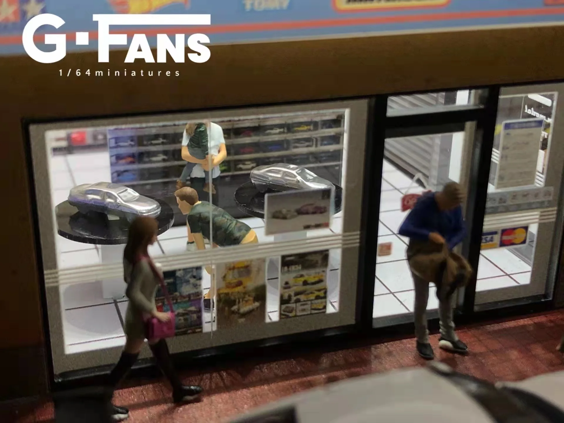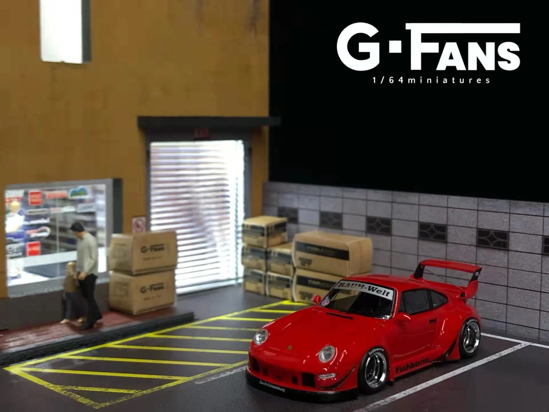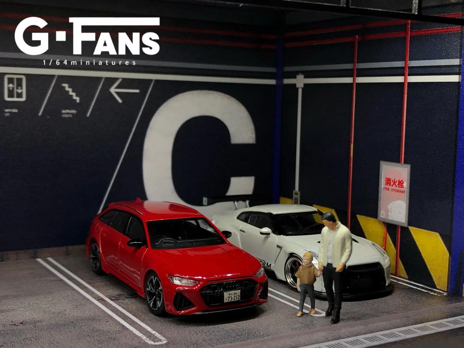 1:64 G Fans Car Dioramas Parking Lot Led Lights Vehicle Display Collection Display Usb Connector Car Store Models